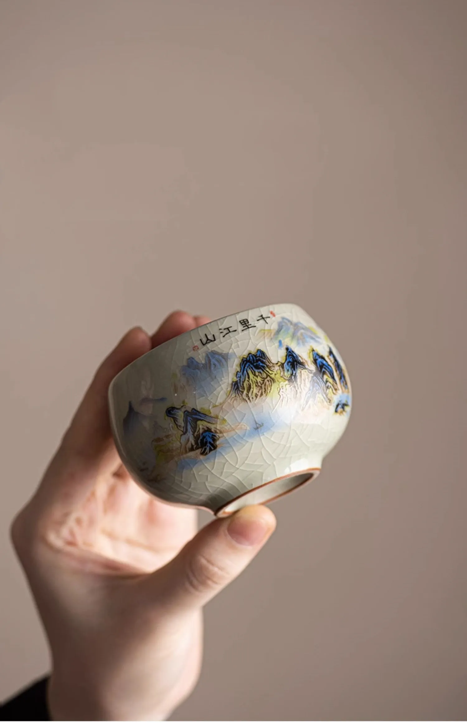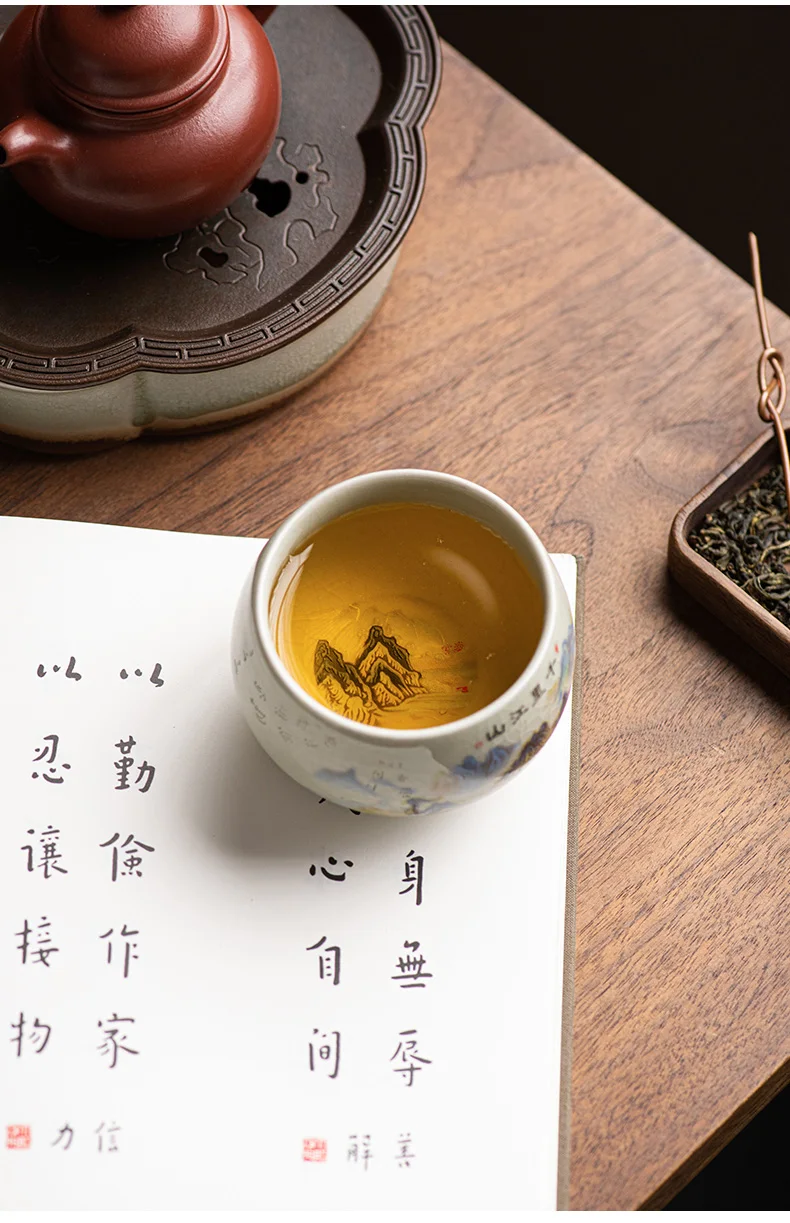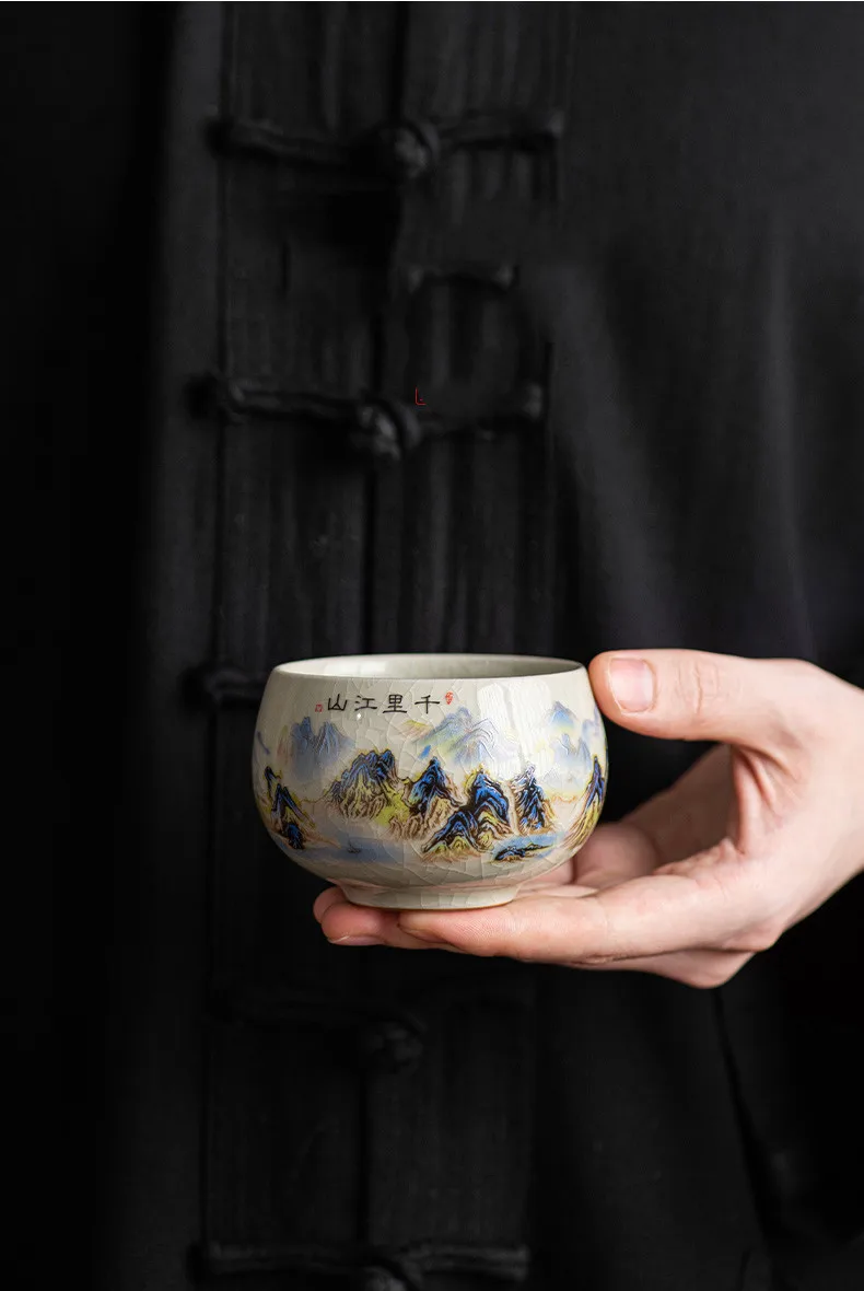 140ml Exquisite Ice Crack Glaze Ceramic Tea Cups Hand-painted Porcelain Master Cup Exquisite Teacup Tea Accessories 1pcs tea cup